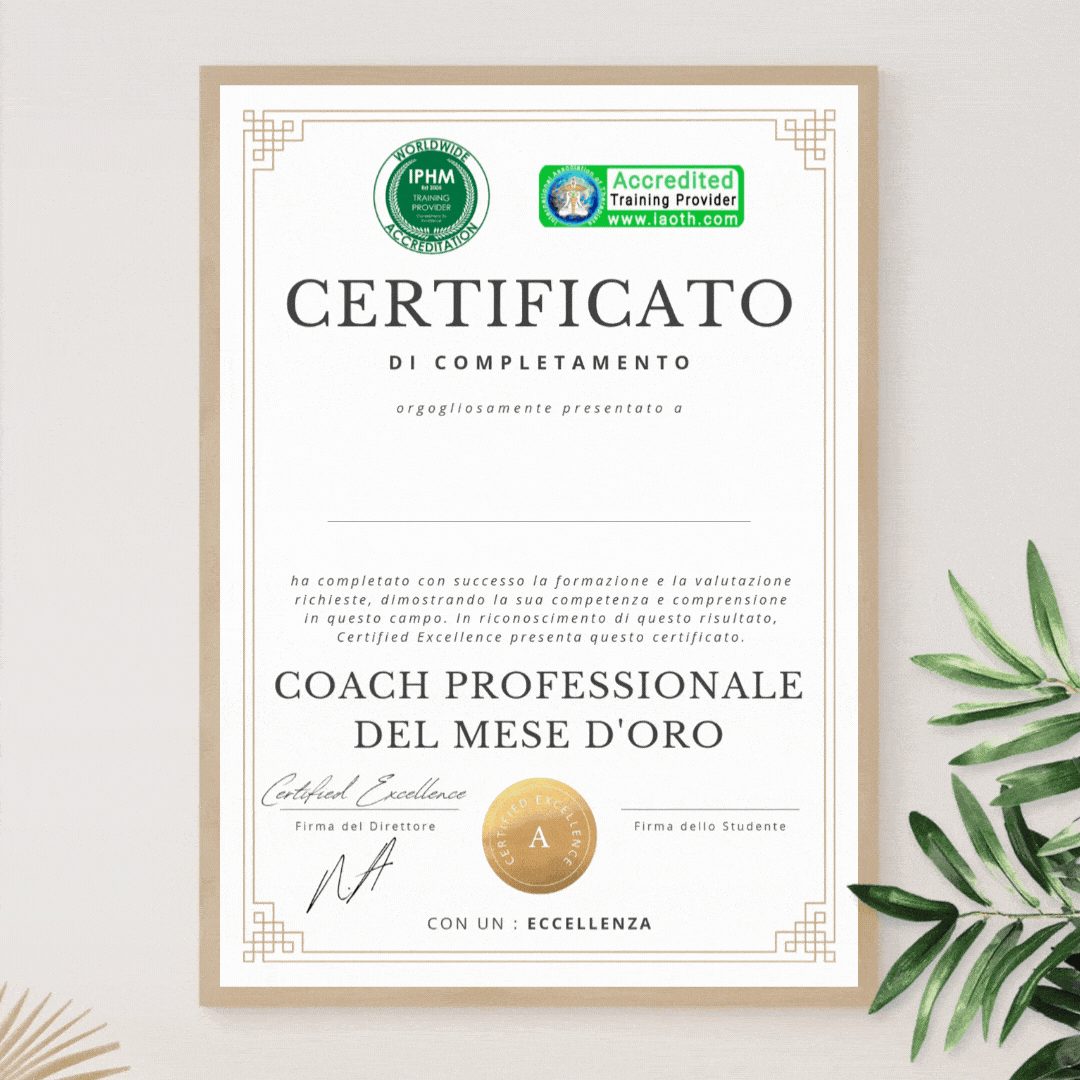 Scegliendo il nostro corso, investi in un’expertise senza pari e nella costruzione della tua reputazione come Coach Certificato del Mese D’Oro. Una volta completato il corso, sarai in grado di supportare e trasformare vite, offrendo speranza e sostegno a ogni donna che guiderai attraverso questo passaggio.